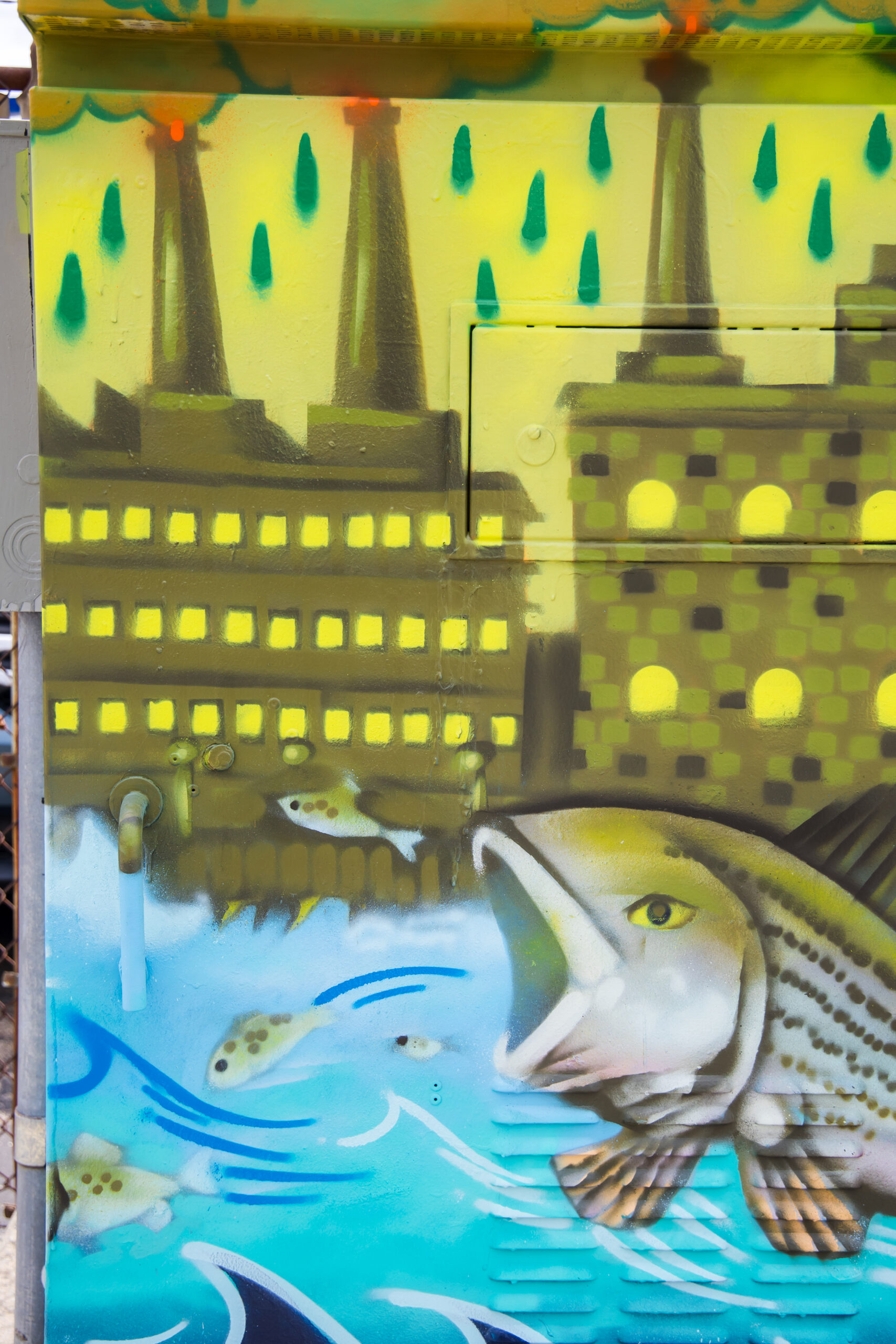 Growing up locally we decided to go with a design that reflects the industrial landscape in Rhode Island. Also, being fishermen, we decided to add some of the local species from our waters.