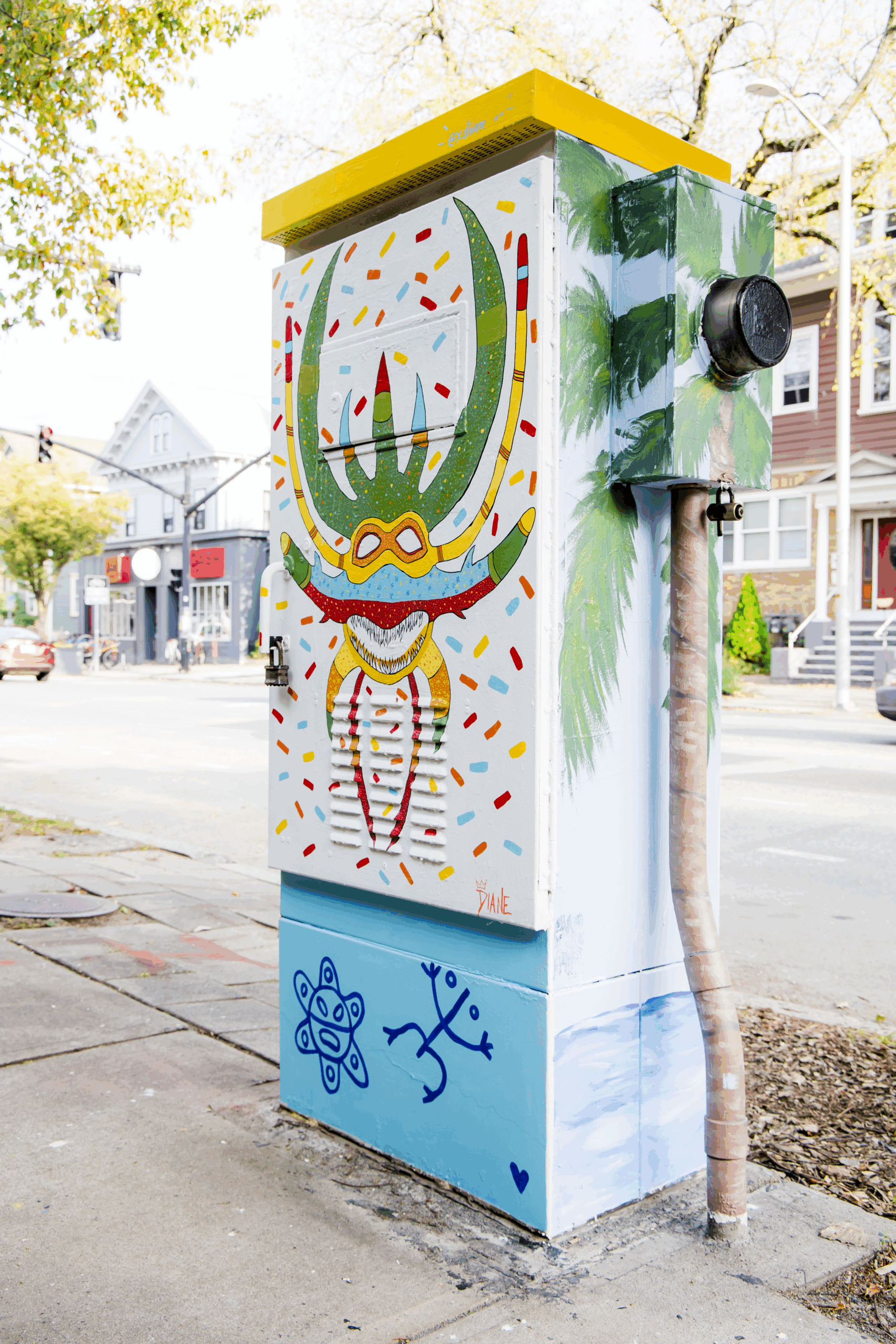This art piece highlights the interpretation of the Lechón and Vejigante masks as sources