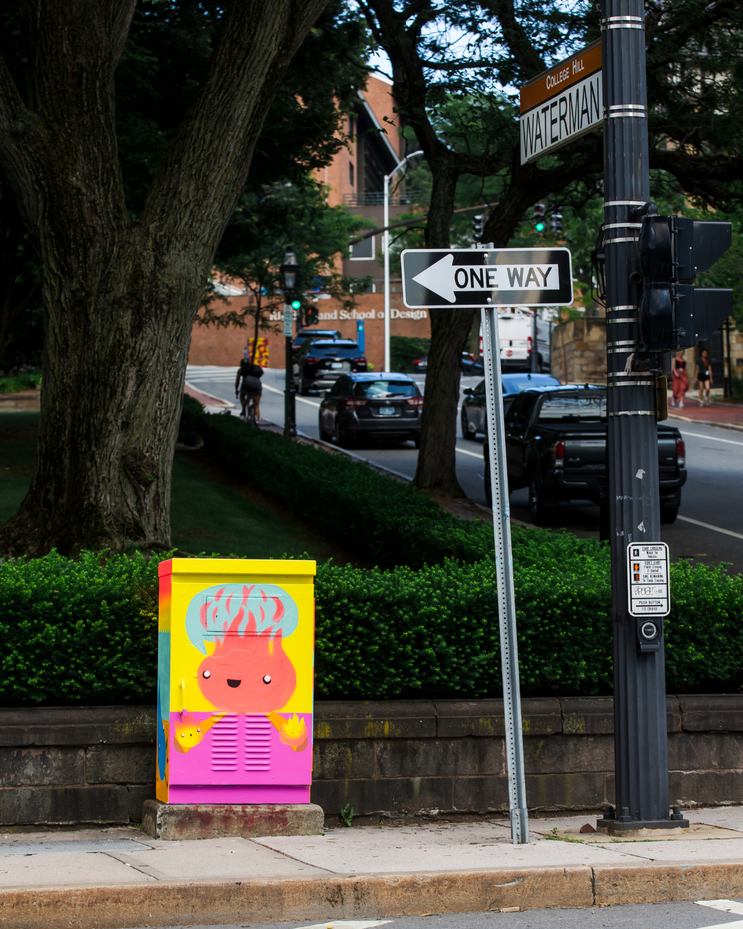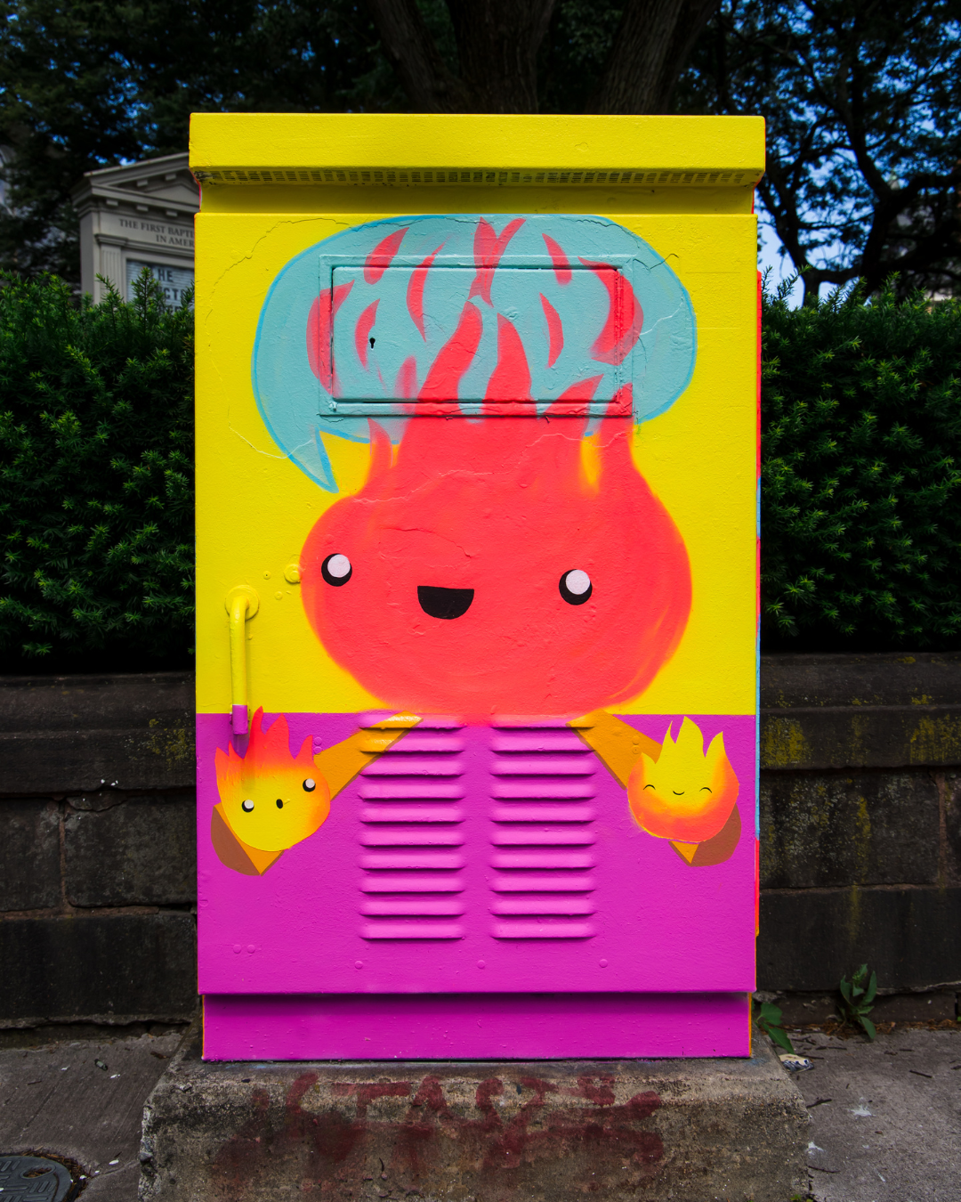 About the Artist: Based in Providence, LUMUKU takes a holistic approach to making the world a brighter place by uplifting the individual, sparking interpersonal connections, and strengthening community bonds. LUMUKU characters can be found in silkscreen prints and language learning card games, to public art installations and everywhere in between.
